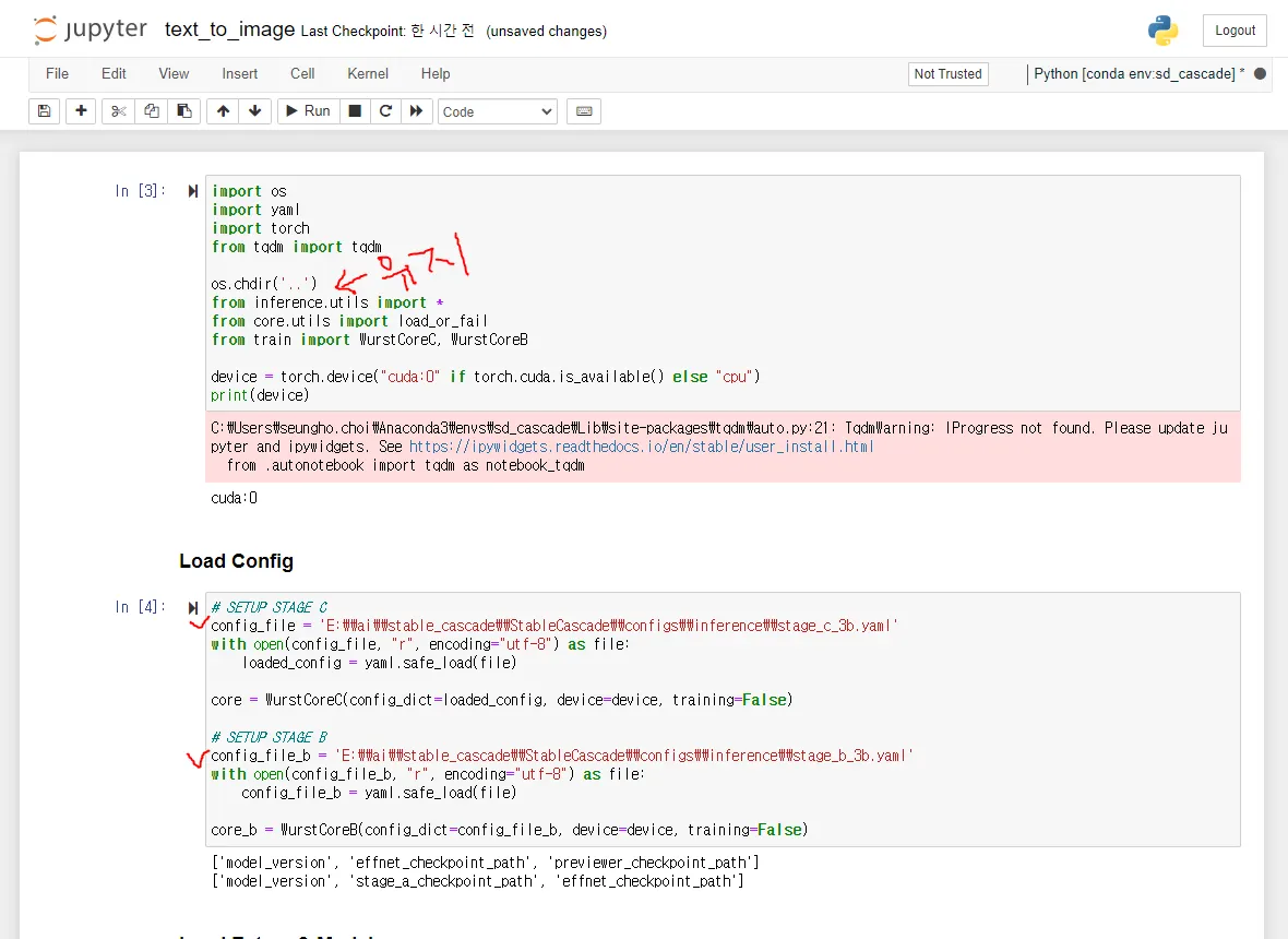 코드 초반에 HF의 Cache 경로를 여유가 있는 디스크로 설정하는 부분이 있다.