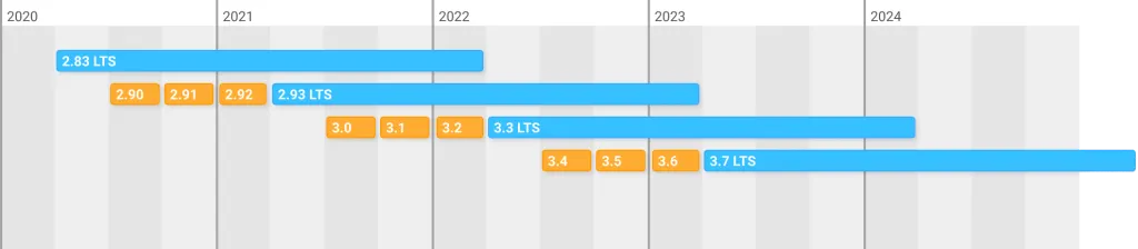 Blender 2.83 LTS는 1 년 동안 유지되며 2.93 LTS는 2 년 동안 유지됩니다. 롱 텀 스테이블 릴리스는 드라이버 호환성 업데이트 외에도 우선 순위가 높은 버그 및 회귀에 대한 수정 사항을 받게됩니다.