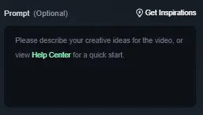 Kling AI의 경우에는 사이드바에 비디오 생성에 대한 설정들이 모여 있습니다. 실제적으로 영상을 생성하기 위해서 프롬프트를 입력하는 텍스트 필드는 아래와 같습니다.