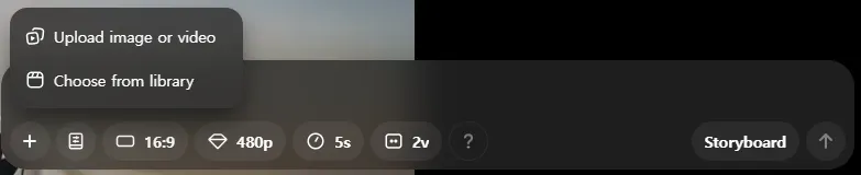 OpenAI Sora의 프롬프트 입력창에서 + 아이콘을 눌러서 준비한 이미지를 업로드 합니다. Sora에서는 기존의 영상을 다시 인풋으로 넣을 수 있습니다. 이 부분은 1-3섹션에서 다시 설명하도록 하겠습니다.