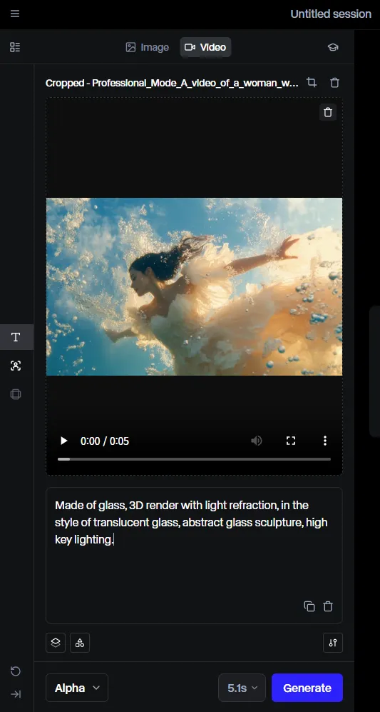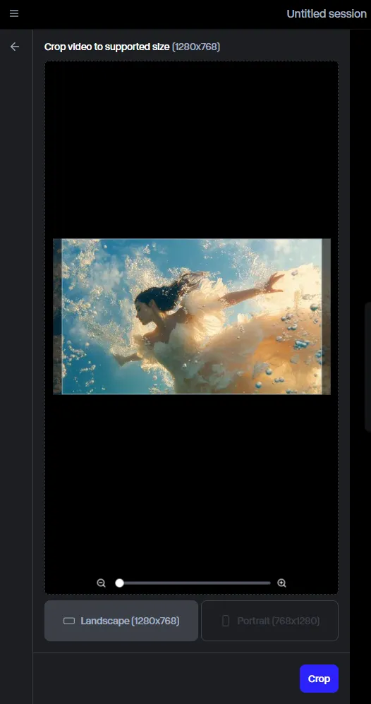 아래의 이미지와 같이 인풋으로 사용할 영상을 업로드 합니다. Gen-3 Alpha는 1280x768 및 768x1280의 해상도를 지원합니다. 현재 인풋으로 사용하는 영상이 FHD(1920 x 1080)이기 때문에 사용하기 위해서 자동으로 크롭을 하게 됩니다.