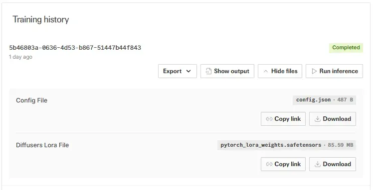 Fal.ai의 LoRA 패스는 fal-ai/flux-lora-fast-training의 Train history에서 Diffusers Lora FIle을 Copy Link를 통해서 카피해서 입력하면 됩니다.