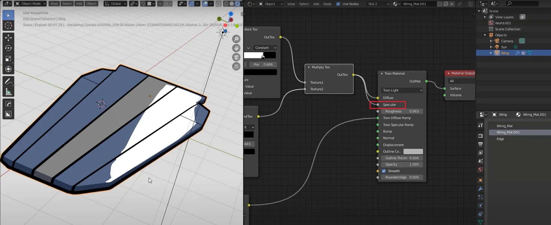 Specular에서 엣지를 보이게 하려면 간단하게도 Diffuse에 들어가 라인을 Specular에 넣어주기만 하면 됩니다.