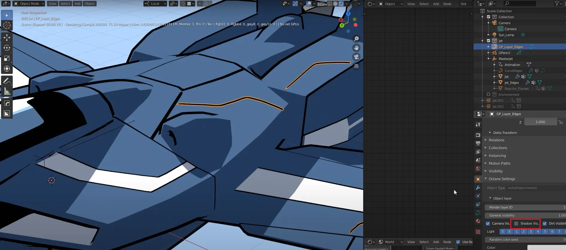 Octane으로 NPR을 하면 스펙큘러와 쉐도우가 깔끔합니다.
