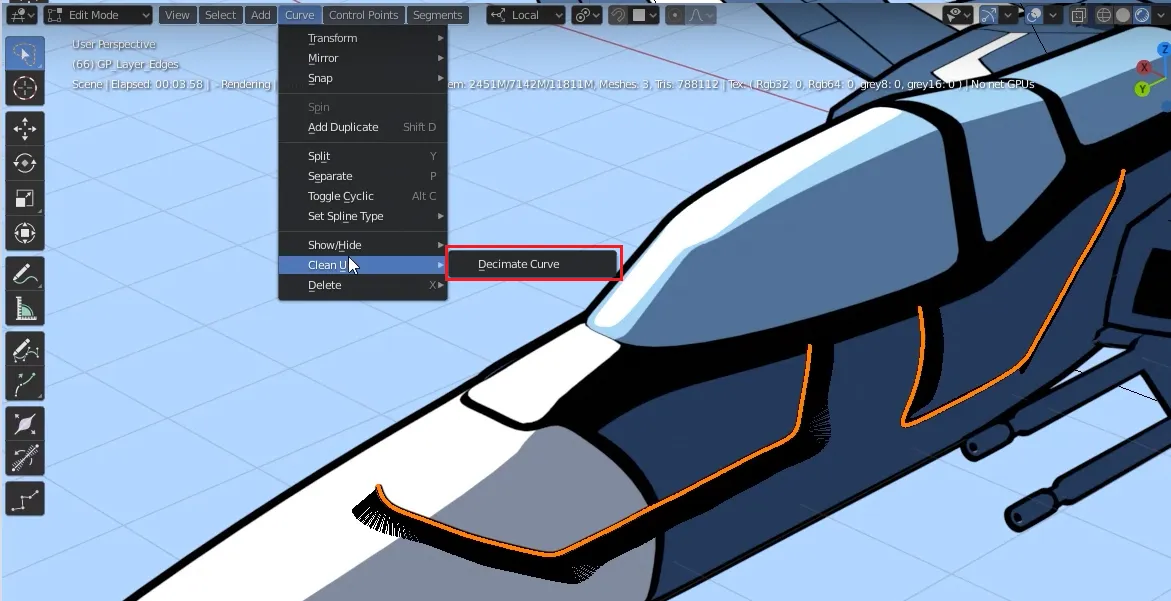 GP의 선을 보정하고 Curve로 바꿔서 빠르게 Inner Line에 응용할 수 있습니다.