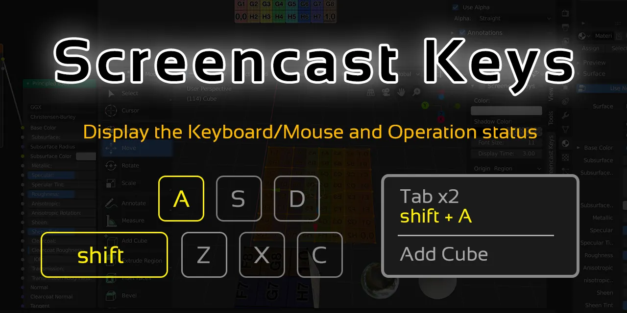 Screencast Keys 애드온을 사용하면 Blender에서 3D Viewport에서 어떤 키를 누르는지 확인할 수 있습니다. 이것은 Blender를 주제로 한 튜토리얼을 녹화할 때 유용합니다.